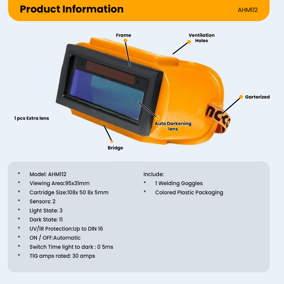AHM112 INGCO AUTO-DARKENING WELDING GOGGLE